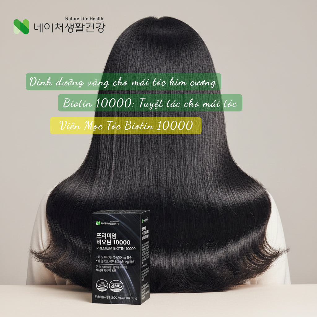 🌿 Biotin hàm lượng cao kết hợp men bia khô: Biotin là vi chất quan trọng đối với tóc và móng, hỗ trợ quá trình hình thành keratin tự nhiên. Kết hợp cùng men bia khô giúp bổ sung vitamin nhóm B và dưỡng chất cần thiết, hỗ trợ tóc chắc khỏe, hạn chế gãy rụng do thiếu hụt dinh dưỡng.
